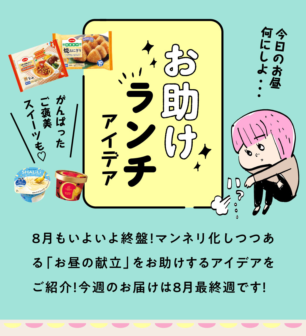 8月もいよいよ終盤!マンネリ化しつつある「お昼の献立」をお助けするアイデアをご紹介!今週のお届けは8月最終週です!