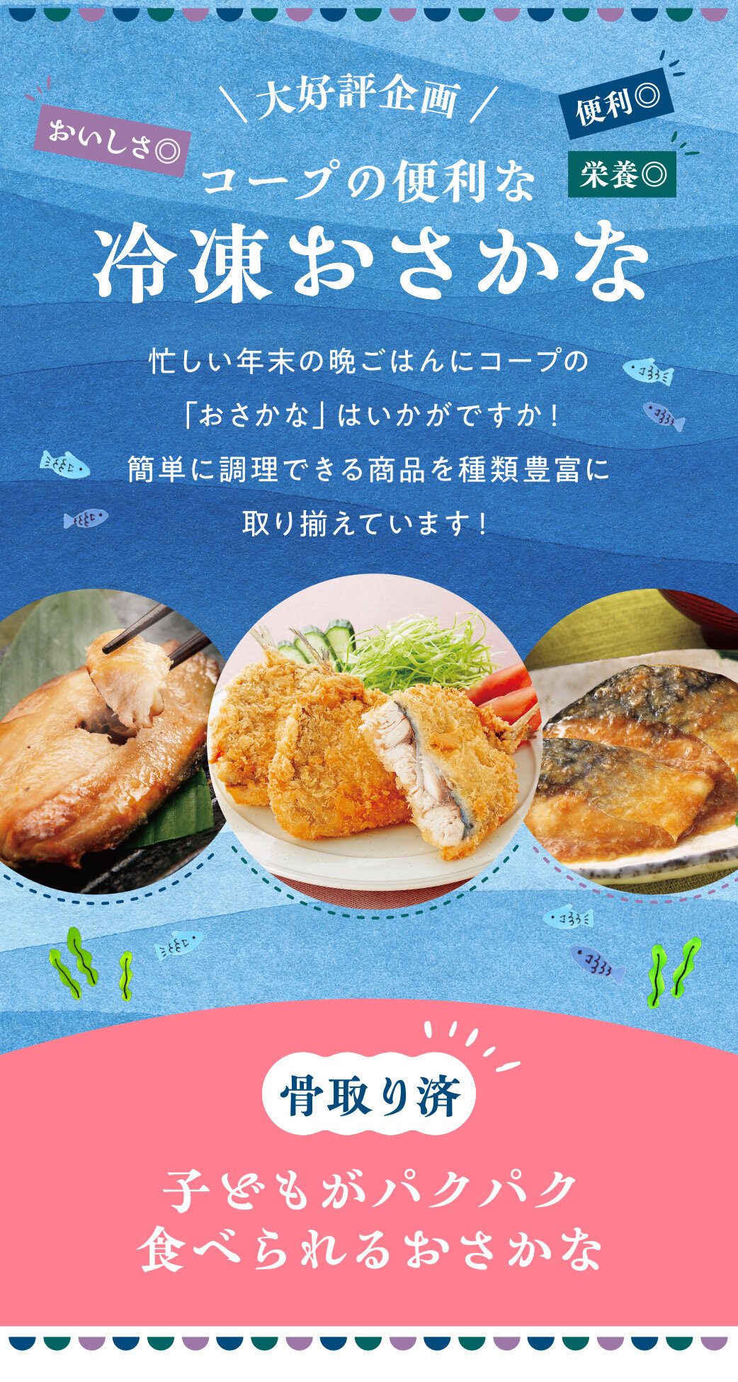忙しい年末の晩ごはんにコープの「おさかな」はいかがですか!簡単に調理できる商品を種類豊富に取り揃えています!