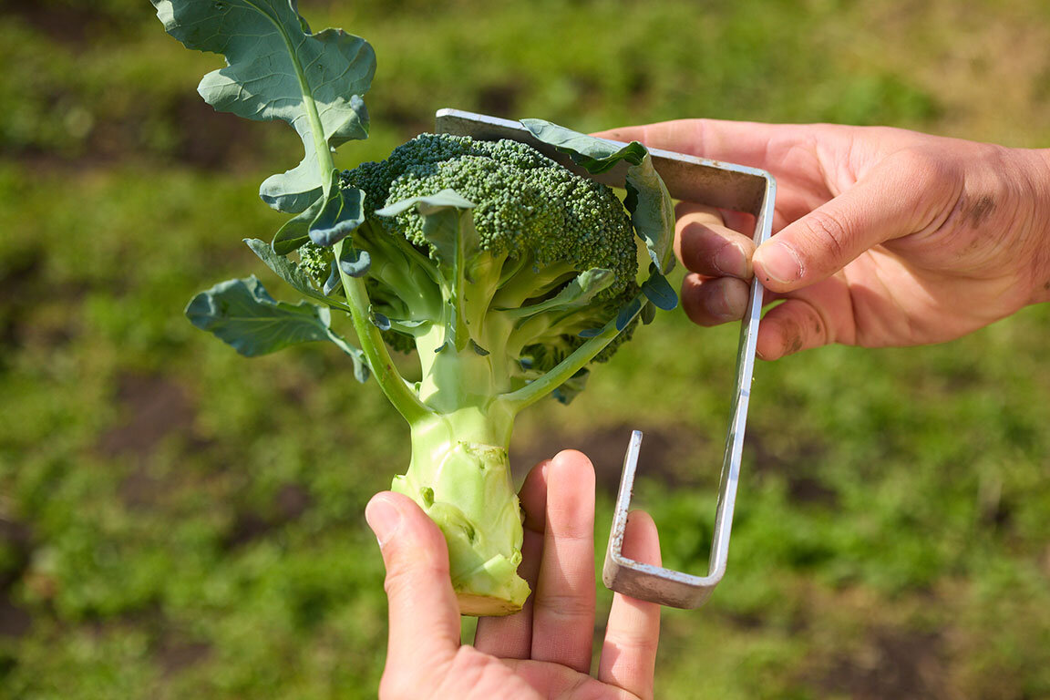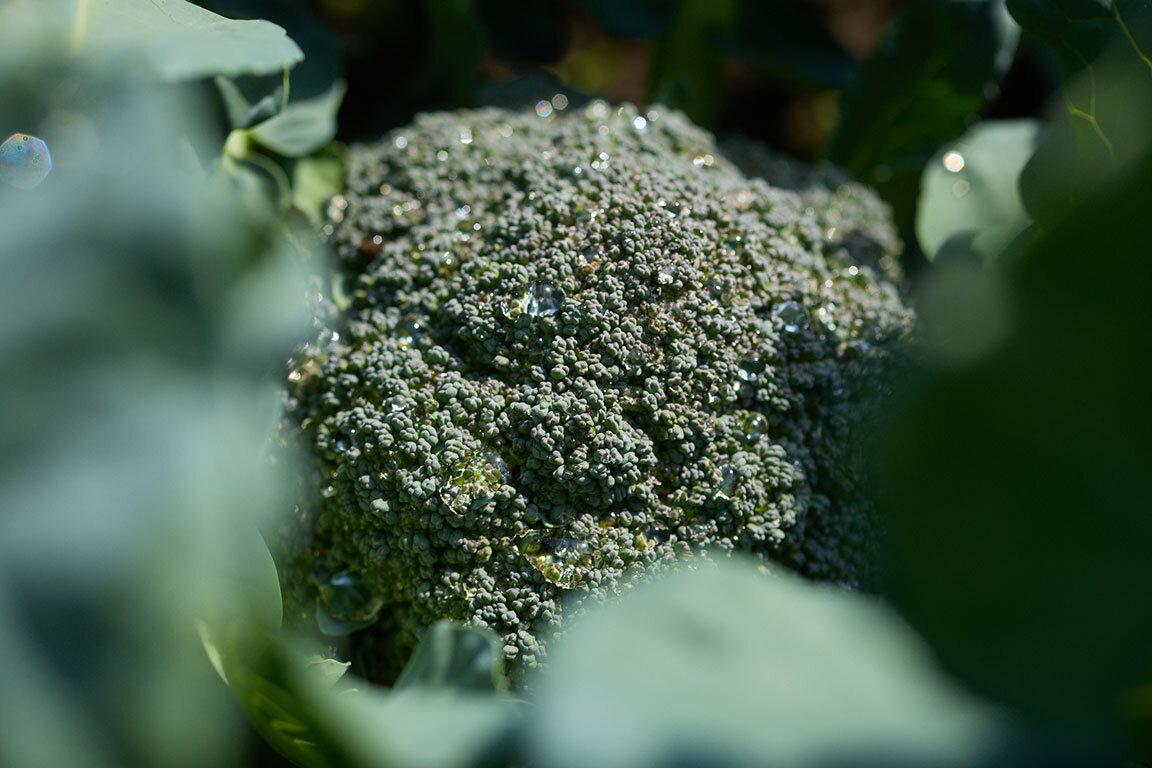 収穫は深夜から早朝の気温の低い時間のうちに行われ、生産者のつけるヘッドライトの光が点々と畑に灯る様子は収穫時期の風物詩。成長具合もまちまちなので、暗い中でも1つずつ目で確かめて、手作業で収穫しなければなりません。採れたてのブロッコリーは葉をむしる音や触感までもがフレッシュ。蕾がギュッと詰まって形はふっくら、一番良いタイミングで収穫した証です。
