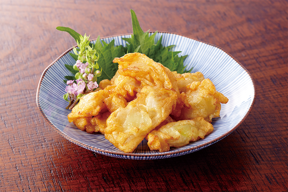 「野菜それぞれの味を活かし、食感をしっかり感じられるように、すり身と野菜のバランスは特にこだわりました。また食感を楽しんでいただくため、一口サイズに成形したら、二度揚げしています。