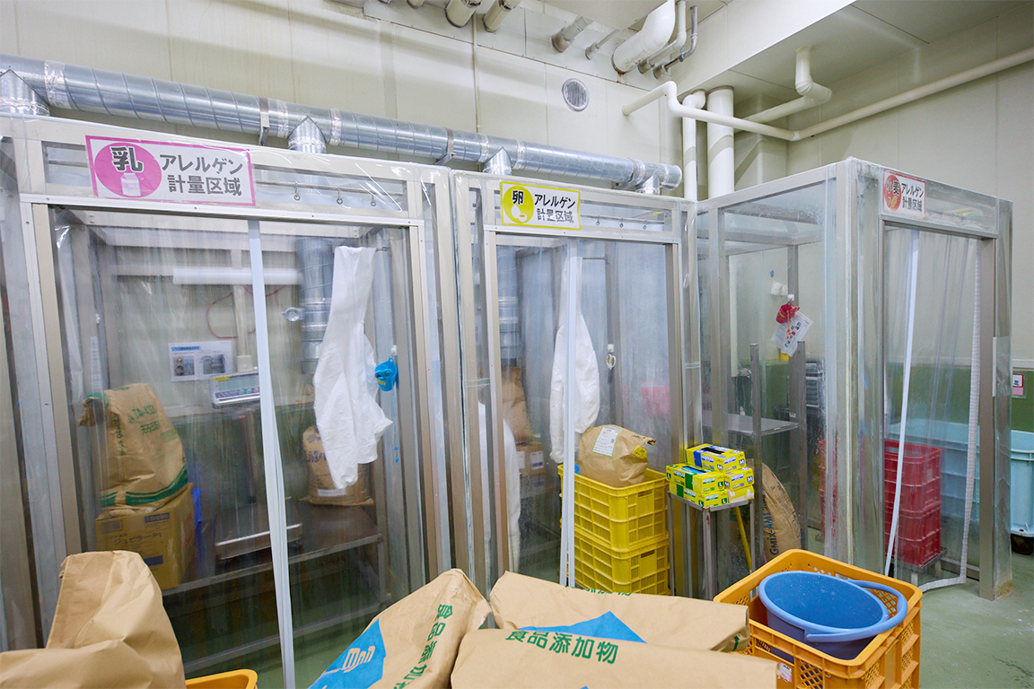 管理され、アレルゲンとなる小麦や卵などの調合は