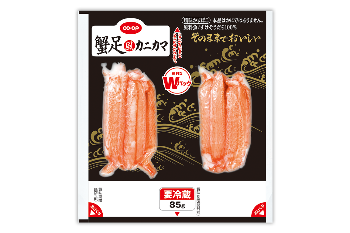 同じく魚のすり身を使い、まるで本物の蟹足のような風味や繊維感を再現した「CO・OP蟹足風カニカマ」も、そのままでもおいしくサッと使えて便利な一品。ジューシーで、おつまみやサラダに彩りを添える商品として、リピートする組合員が後を断ちません。