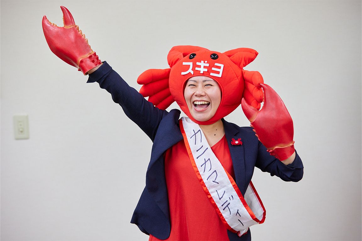 今回の取材でとびきりの笑顔で迎えてくださったのが、スギヨの「カニカマレディー」さん。入社5日後から自らカニとなり、カニカマがさらに愛される食品になるよう、全力でその魅力を伝えてくださいました。またカニカマ誕生50年を記念して制作された映像作品「カニカマ氏、語る」では、スギヨの歴史や開発秘話を、英国紳士風の「カニカマ氏」が語っています。こんなところからも、スギヨの強みである創意工夫やチャレンジ精神が垣間見えたのでした。