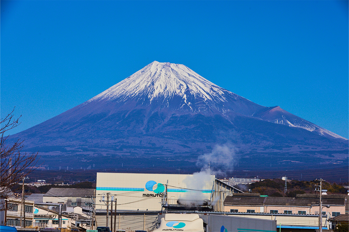 訪れた工場の1つ、丸富コンバーティングのすぐ前の水路にも、澄んだ富士の伏流水が流れています。水源を大切にしながら自然と融合し、真摯なモノづくりを続ける企業の姿勢が、環境からも裏付けられているように感じました。