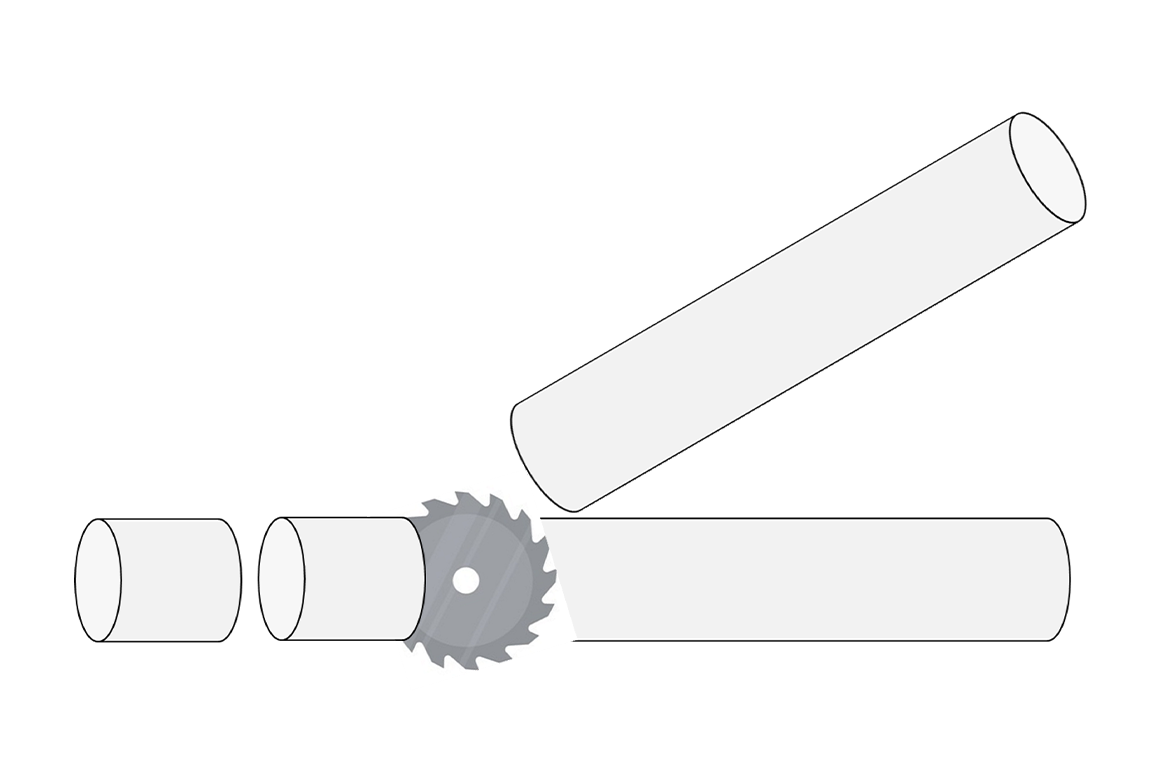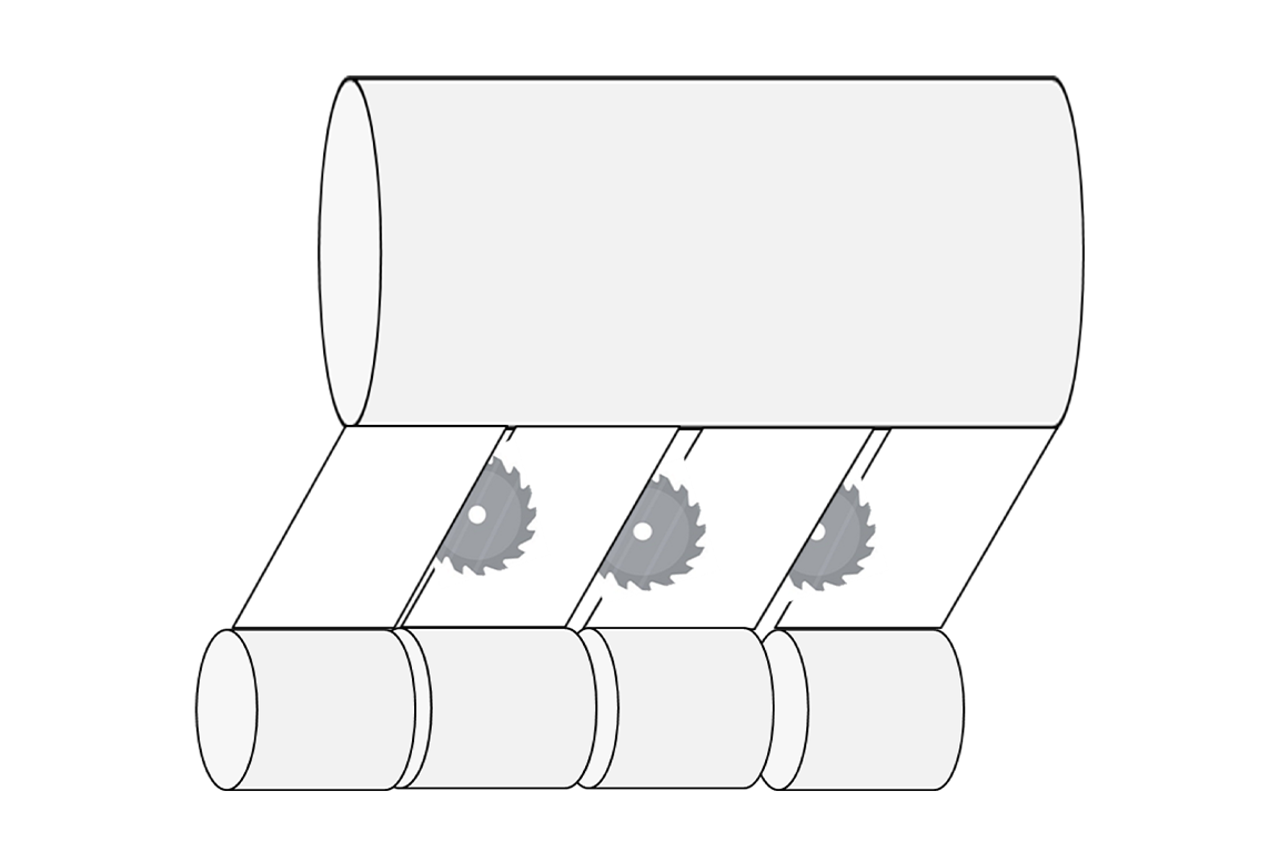 丸富製紙が行う、「既定の幅に切りながら巻く」方法