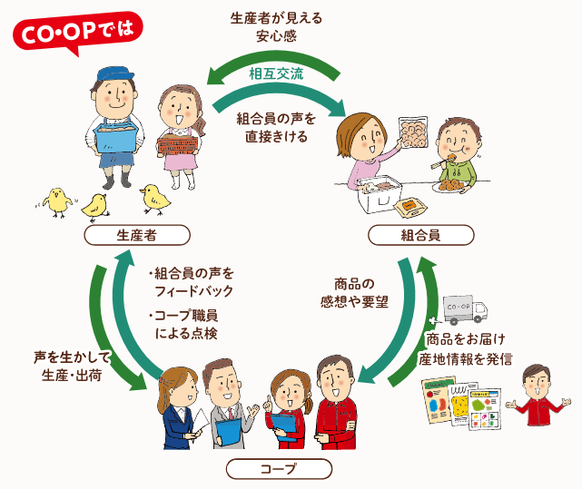産直団体と提携し、安全性が確保された新鮮でおいしい、 環境にやさしい農水畜産物を安定的にお届けする取り組みです。