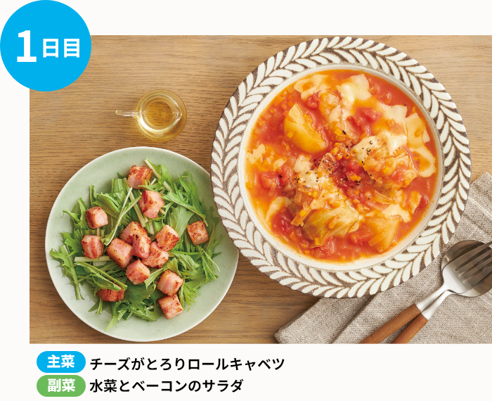 プロが考えた、3日分の主菜と副菜の食材が、レシピと一緒に届きます。