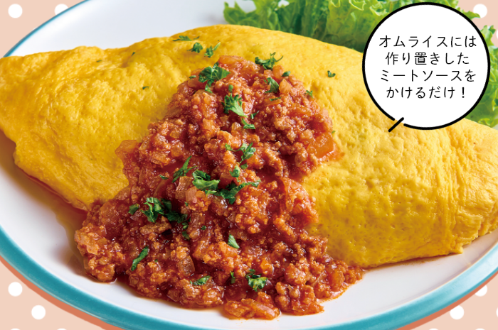① 小鍋に水1カップに対してミートソース200gを入れて煮立てる。