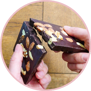ずっしりと厚さのあるチョコレートに、ナッツやフルーツをふんだんにトッピングしました。これぞ!という1種をチョイスしても、3種全部大人買いしても♪