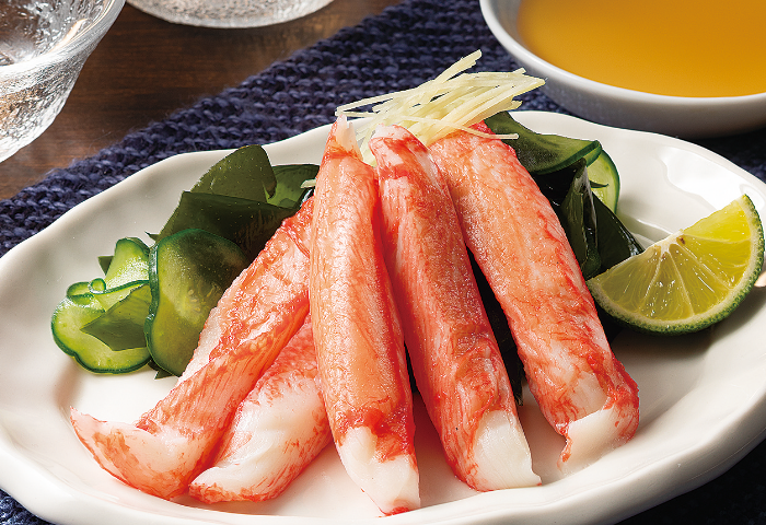原料には水揚後の船上で加工した新鮮なスケトウダラのすり身を100%使用し、本物のカニのような旨み成分、複雑な繊維感を再現。カニの持つジューシーな味わいも追求しています。