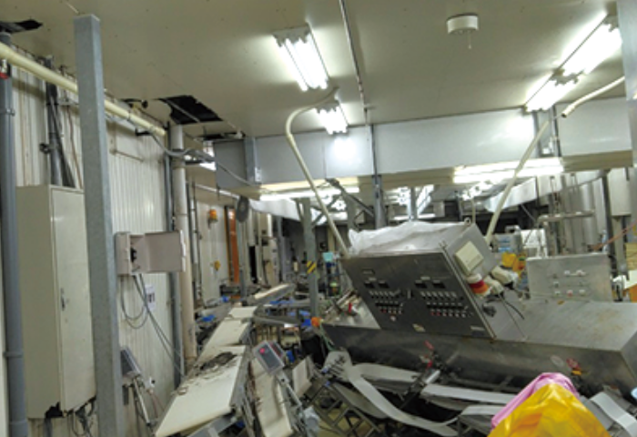 震災直後の工場内(カニカマ包装エリア)