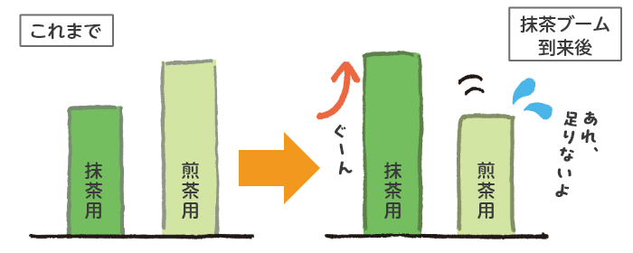 ところが、世界が日本のお茶の魅力に気づき、抹茶ブームが到来。抹茶の需要が急上昇し、煎茶用の原料茶葉が足りなくなってしまったのです。