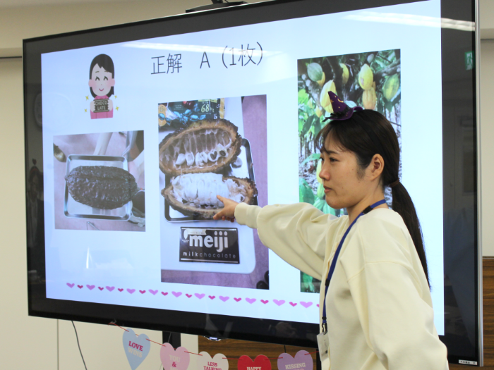 バレンタインの思い出エピソードで盛り上がったあとは、事務所スタッフによる「チョコレートクイズ」が行われました!「へ~知らなかった!」など、チョコレートについてちょこっと知識が深まる時間となりました。