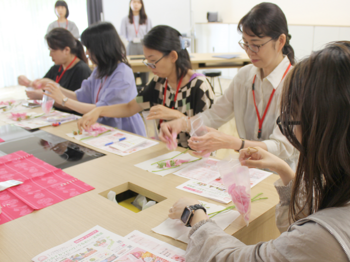 ばらしてみると、バラの香りがフワッと広がり、「良い香り~癒される~」と皆さんからのコメントが。