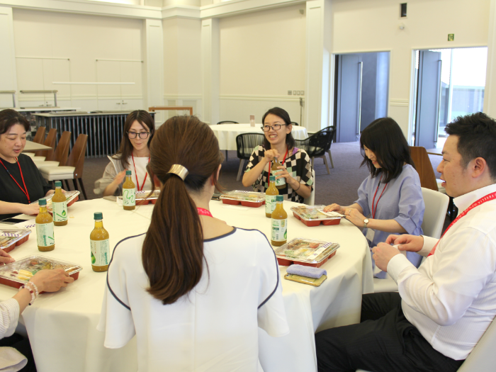参加者の皆さん、ナリス化粧品の方とワイワイ交流しながら、お昼ごはん♡
