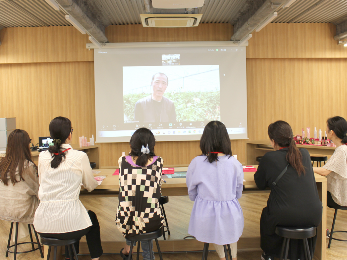 昼食後は、宮城県にあるナリス化粧品のバラ園とオンラインで中継!